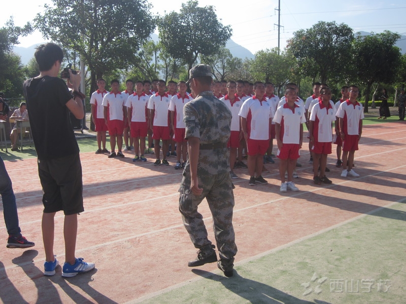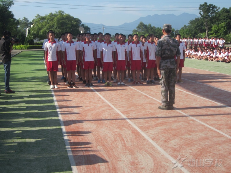 2014年8月30日上午,西山学校高中部举行2014年高一学生军训会操表演暨闭幕式。中国人民解放军73307部队喻俊杰队长、高中部赵雷校长、褚广宁副校长、庞志涛副校长、高一年段王海波段长出席了会操表演暨闭幕式,高一年段全体师生参加了会操表演暨闭幕式。大会由庞志涛副校长主持。