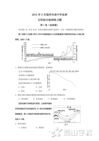 2015年5月福州市高中毕业班文科综合地理练习题WORD下载
