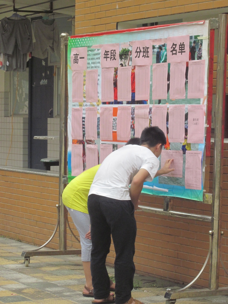 同学和家长们在西山学校高中部2015年高考光荣榜前驻足,今年高考同学们取得非凡的成绩,高考成绩600分以上有9人,本一上线139人,本科上线335人,总上线率99.6%。其中原高三2班的俞倩婷同学考入清华大学,原高三10班的叶思捷同学考入世界四大美术学院之一的俄罗斯列宾美术学院。还有老奶奶在教孙子认光荣榜上的名字,希望小小的他长大后也能向这些哥哥姐姐们学习。