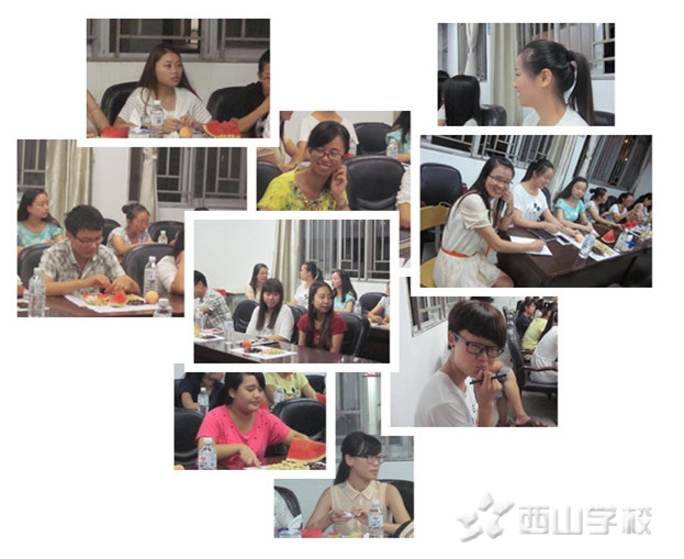 为欢迎西山学校一批新教师的加入,使各位新教师尽快熟悉西山学校的校园生活,帮助解决教师们生活、工作中的困难,西山学校高中部于2015年8月26日晚上组织召开高中部新教师座谈会。西山学校副校长赵雷、校办副主任孔令金、高中部校长庞志涛、高中部副校长赖闽玉、教务处副主任何远君、教科处副主任詹传武、高一年段段长刘志平和副段长赵灿文出席本次会议。
