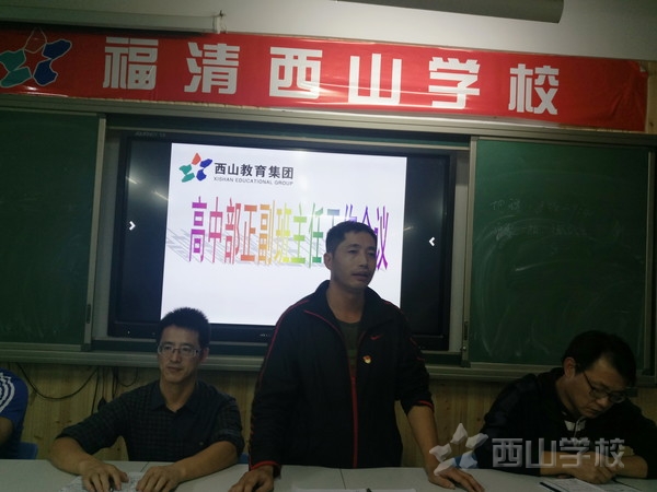 为促进班级管理,加强正副班主任的配合,2017年11月2日晚,福建西山学校高中部在考务室召开正副班主任会议,出席会议的领导有:西山学校副校长仇昌乐、高中部校长庞志涛、副校长褚广宁,政教处主任晏荣华主持会议,高中部全体正副班主任参加会议。