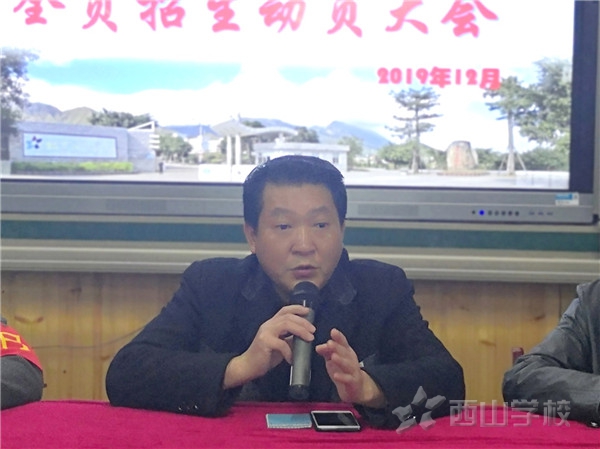 为进一步落实西山学校招生工作会议精神,保证2020年春季招生工作的顺利进行,12月22日晚,西山学校高中部就2020年春季招生工作召开了全员招生动员会,出席会议的领导有西山学校招生办主任饶东辉、高中部常务副校长赖闽玉、副校长王海波,高中部全体教师参加会议。