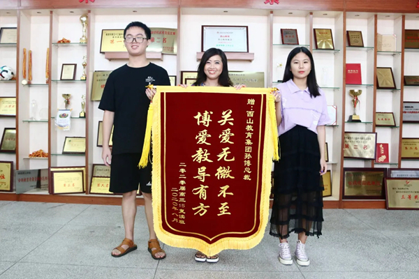 西山教育集团副董事长兼西山教育执行总裁孙博感谢家长对老师的认可和对学校的肯定。她表示,孩子的未来是学校前进的方向,家长的信任是学校前进的动力。近几年学校积极推进教育教学改革,在全体名优教师引领带动和全体同学的不懈努力下,共同实现了全校低进高出、高进优出的骄人成绩。锦旗是褒奖,是肯定,但更是鞭策,是激励。