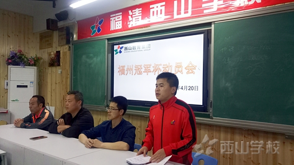 2018年4月20日晚8点,西山学校高中部召开福州市青少年校园足球“冠军杯”动员会。出席会议的领导有:西山学校高中部庞志涛校长、褚广宁副校长、以及游春粦和孙希然两位教练,全体队员参加会议。